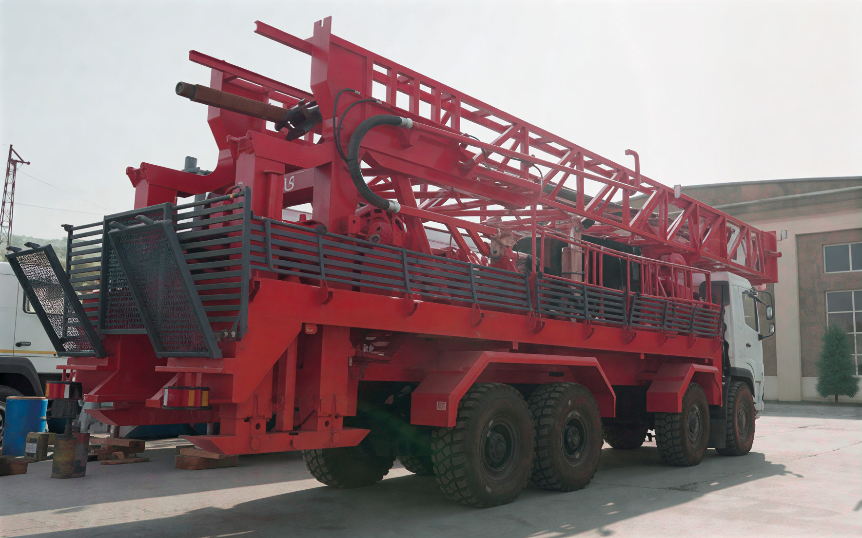 Буровая установка УРБ-50, смонтированная на вездеходном шасси 8×8, представляет собой мощное мобильное решение, предназначенное для глубокого геологоразведочного бурения, бурения водяных скважин, геотехнических работ и инфраструктурных проектов в сложных условиях местности. Установка сочетает в себе высокую грузоподъемность, телескопическую мачту и мощный гидравлический привод, что обеспечивает стабильную работу в условиях бездорожья и на значительных глубинах бурения. Она подходит для непрерывной эксплуатации в отдаленных районах и сложных условиях окружающей среды.